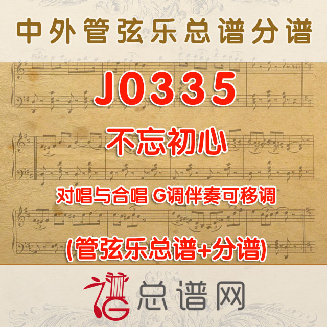 J0335.不忘初心 G调伴奏可移调 管弦乐总谱+分谱