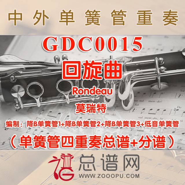 GDC0015.回旋曲Rondeau 莫瑞特 单簧管四重奏总谱+分谱