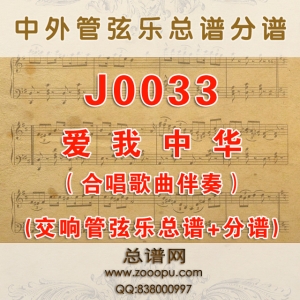 J0634.爱我中华 降E调独唱与合唱伴奏可移调 管弦乐总谱+分谱